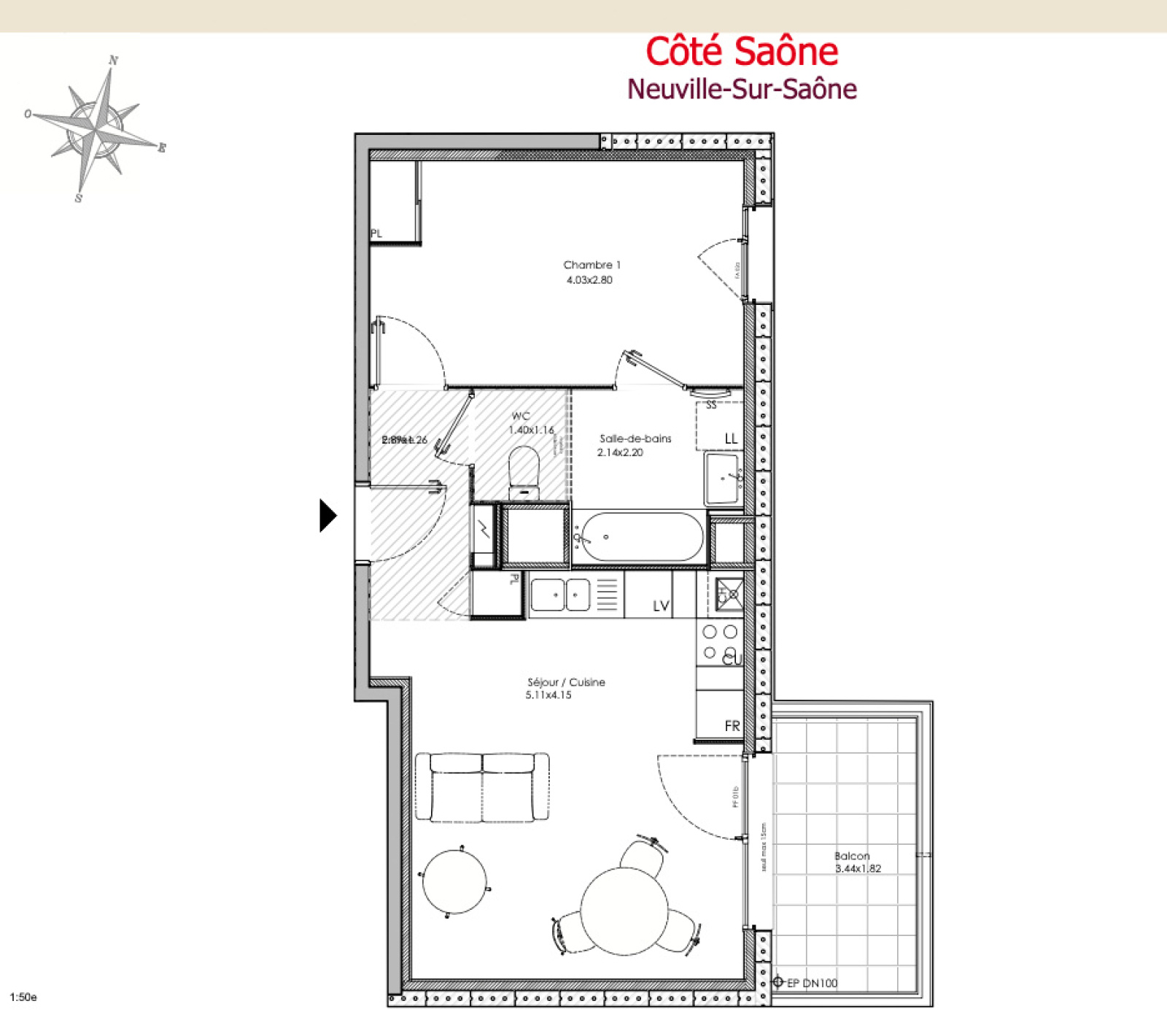 OFFRE EXCEPTIONNELLE - 5000€ PAR PIECE + FRAIS DE NOTAIRE OFFERTS Prochainement, découvrez ce nouvel appartement que vous propose l'agence MARAVILLAS. Situé au coeur d'un projet de construction orienté vers la Saône, vous offrant un cadre de vie agréable à deux pas du centre-ville de Neuville-sur-Saône et du nouveau marché. Livraison prévue au 1er trimestre 2028 Ce T3 au 1er étage se compose de : Une entrée, Un séjour/cuisine lumineux de 26.30 m² ouvrant sur une loggia de 6.30m² Deux chambres de 11,50 m2 et 9,10 m2 Une salle de bain, un WC. Confort et prestations : Résidence sécurisée, Ascenseur dans chaque bâtiment, Une place de stationnement incluse, Chauffage au sol via chaudière gaz à condensation individuelle. Un lieu de vie idéal alliant confort moderne et proximité avec la nature et les commodités urbaines.
